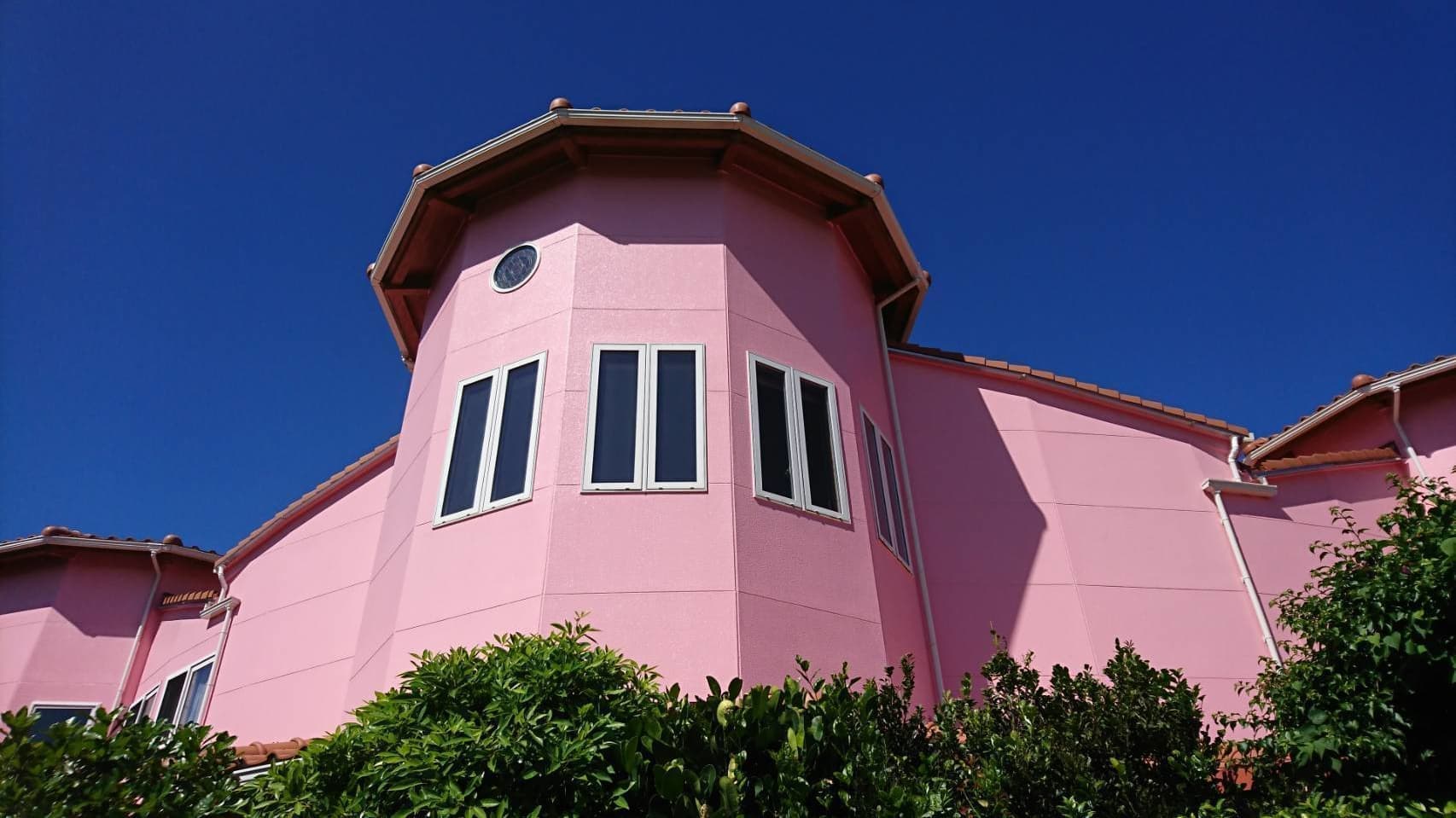 1999年に沖縄に移住して、現在は、恩納村に建てられたピンク色の木造建築